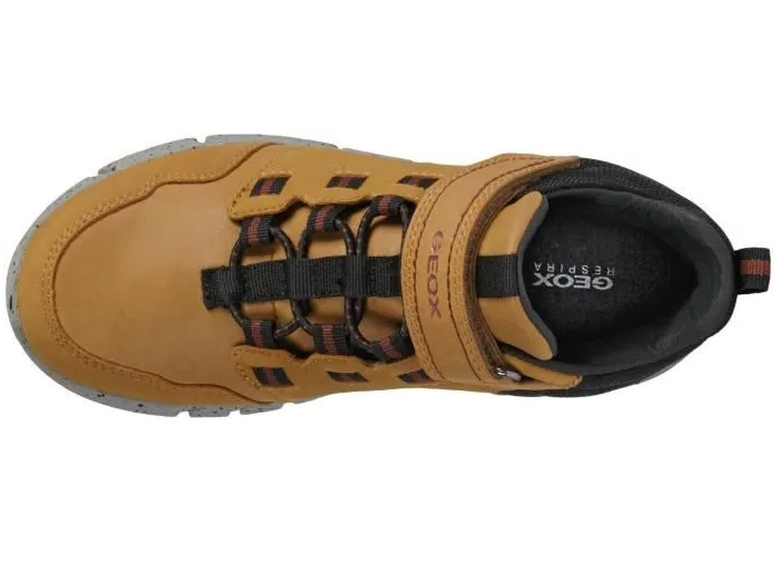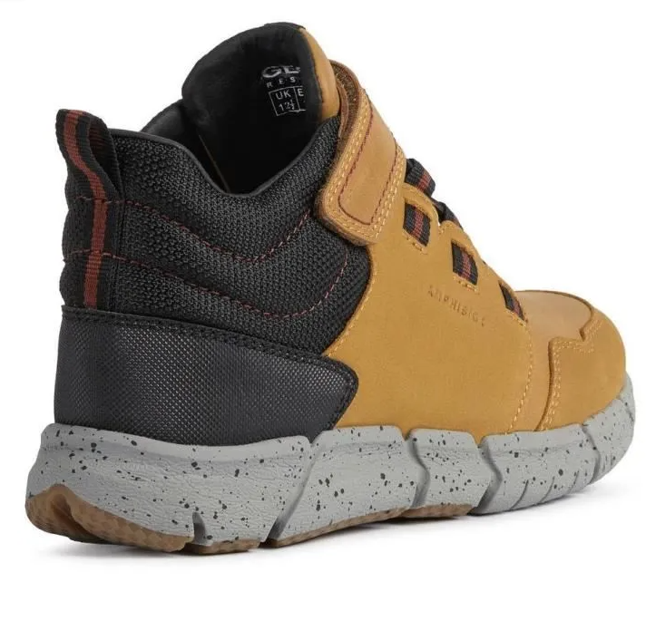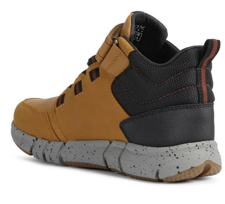 Baskets garçon imperméable Lacet élastiqué et velcro Boots enfant Tex respirant et résistant GEOX Flexyper coloris camel et noir