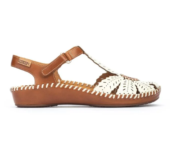 Sandale femme Talon compensé Cuir ajouré Avant fermé PIKOLINOS VALLARTA Coloris beige clair / marron