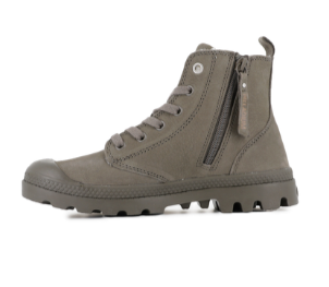Baskets montantes Cuir nubuck Femme lacet+zip Doublure chaude Talon plat très souples Semelle crantée PALLADIUM HI ZIP WL Coloris gris rock