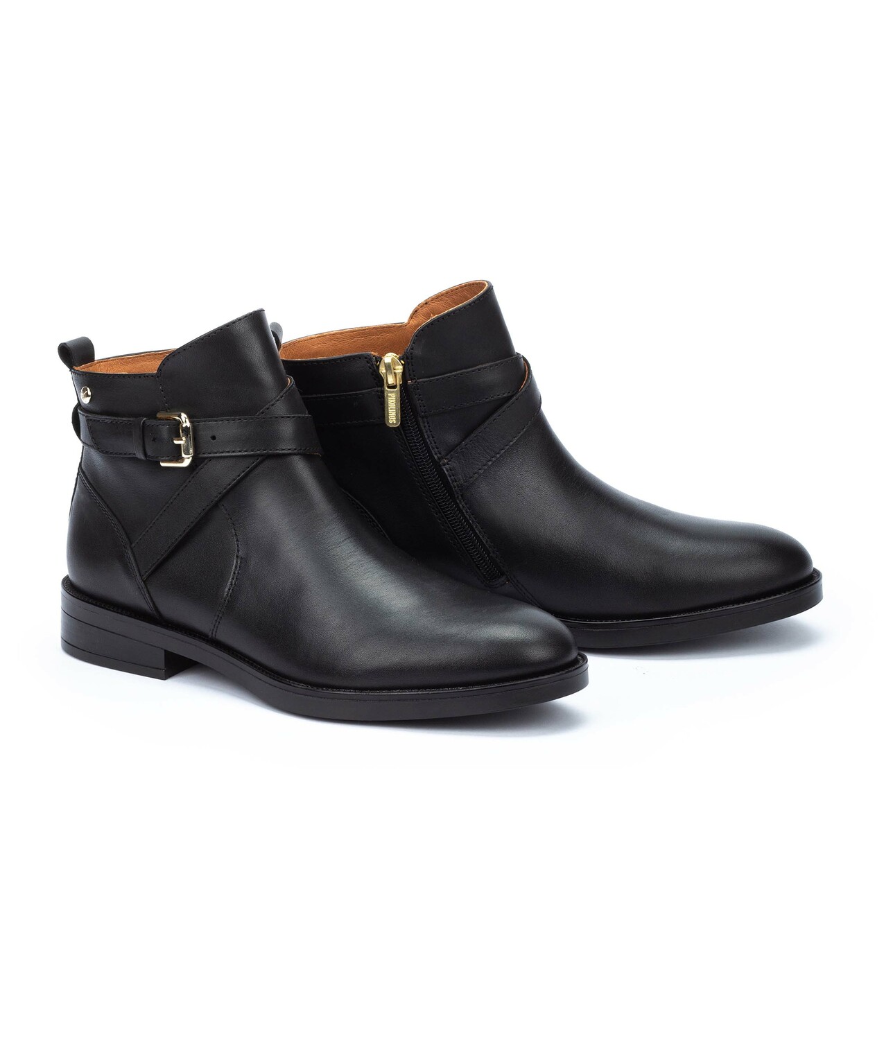 Boot cuir souple femme Talon plat Dessus sans couture Fermeture éclair PIKOLINOS PUERTOLLANO Coloris noir