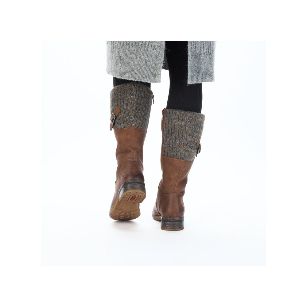 Botte femme Talon carré Doublure chaude Imperméable Mi-botte dame Mollet large RIEKER 94692-24 coloris marron