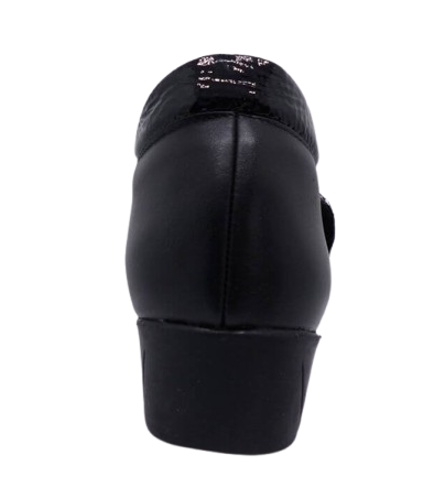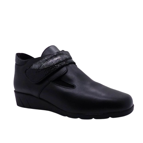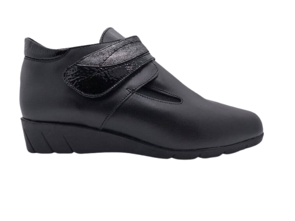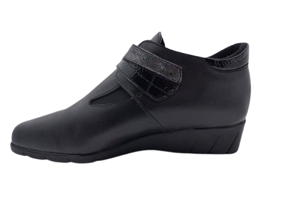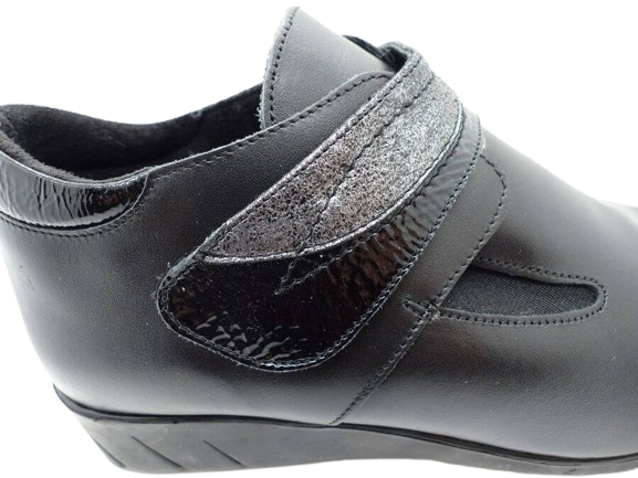 Bottines femme Cuir Doublure textile peluche fermeture velcro Elastiquée côtés Talon compensé Dessus sans couture PEDI GIRL Catogan coloris noir