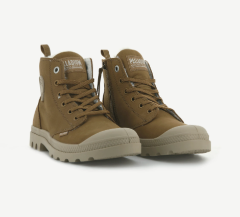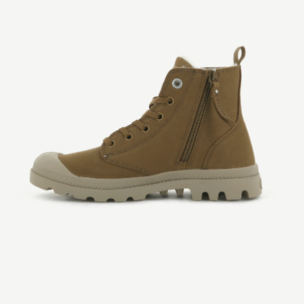 Bottines nubuck Femme lacet+zip Doublure chaude Talon plat très souples Semelle crantée PALLADIUM HI ZIP WL Coloris marron