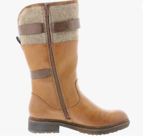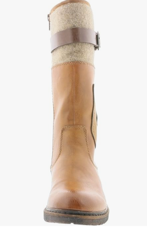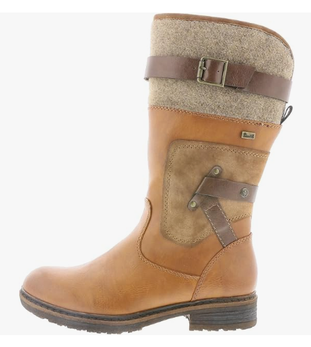 Mi-botte dame Mollet large Botte femme Talon carré Imperméable et chaude RIEKER 94761coloris Camel