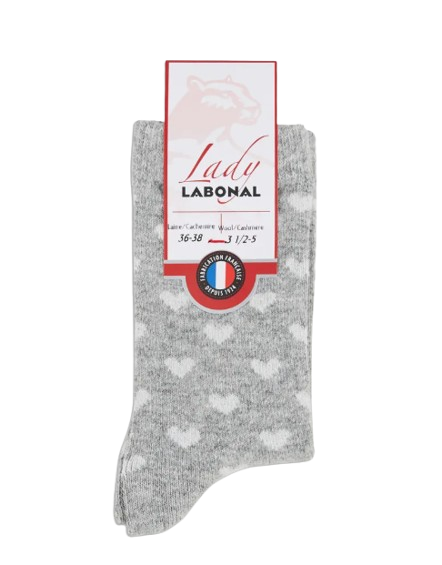 Chaussettes femmes Laine & Cachemire Chaussettes chaudes dame Motifs cœurs LABONAL coloris gris