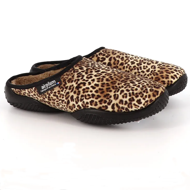 Chaussons femme Mules plates dame Très souples et chauds AIRPLUM BELINE Impression léopard