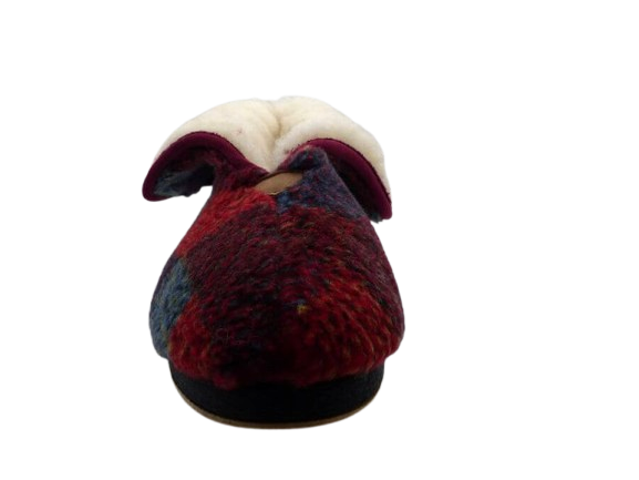 Pantoufle chaude Doublure laine Semelle épaisse Chausson montant dame Charentaise avec rabat femme SEMELFLEX calorosine à carreaux multicolore