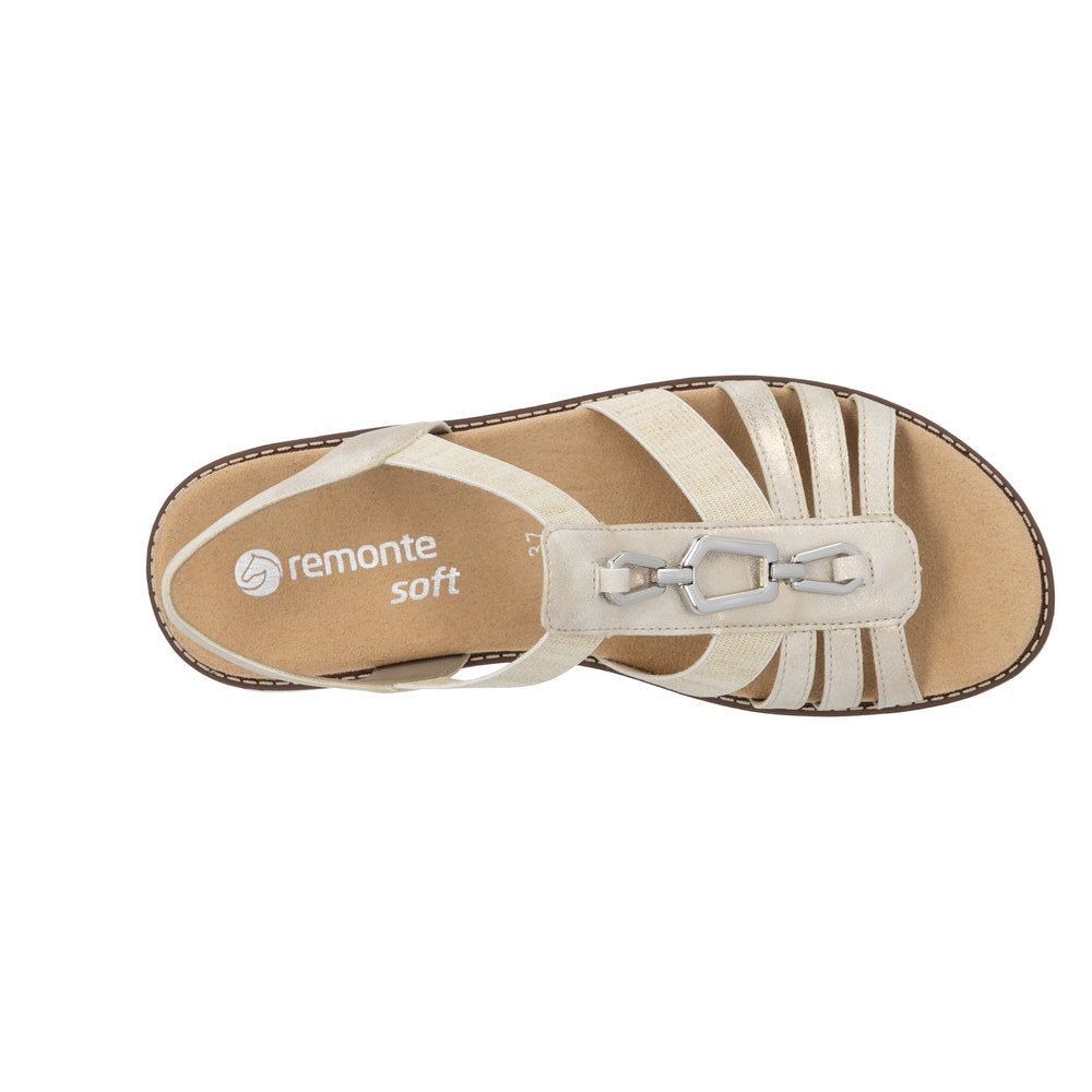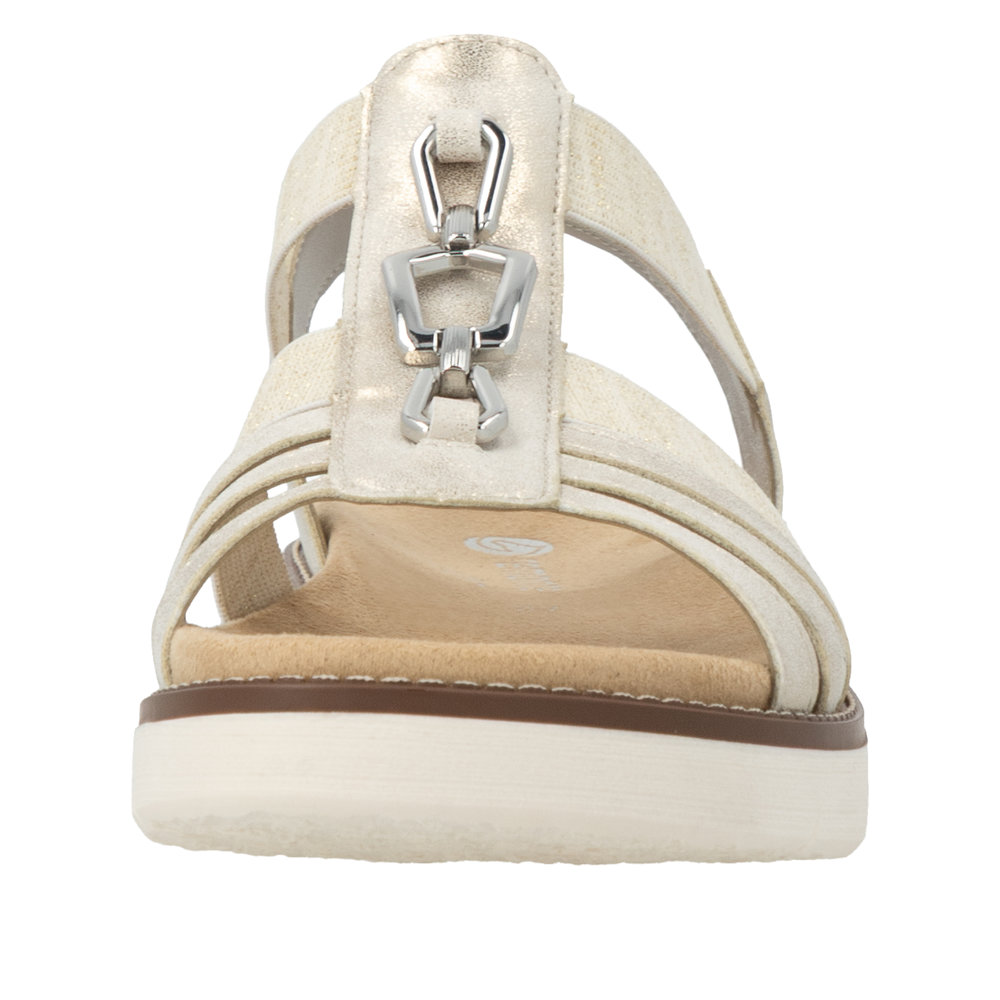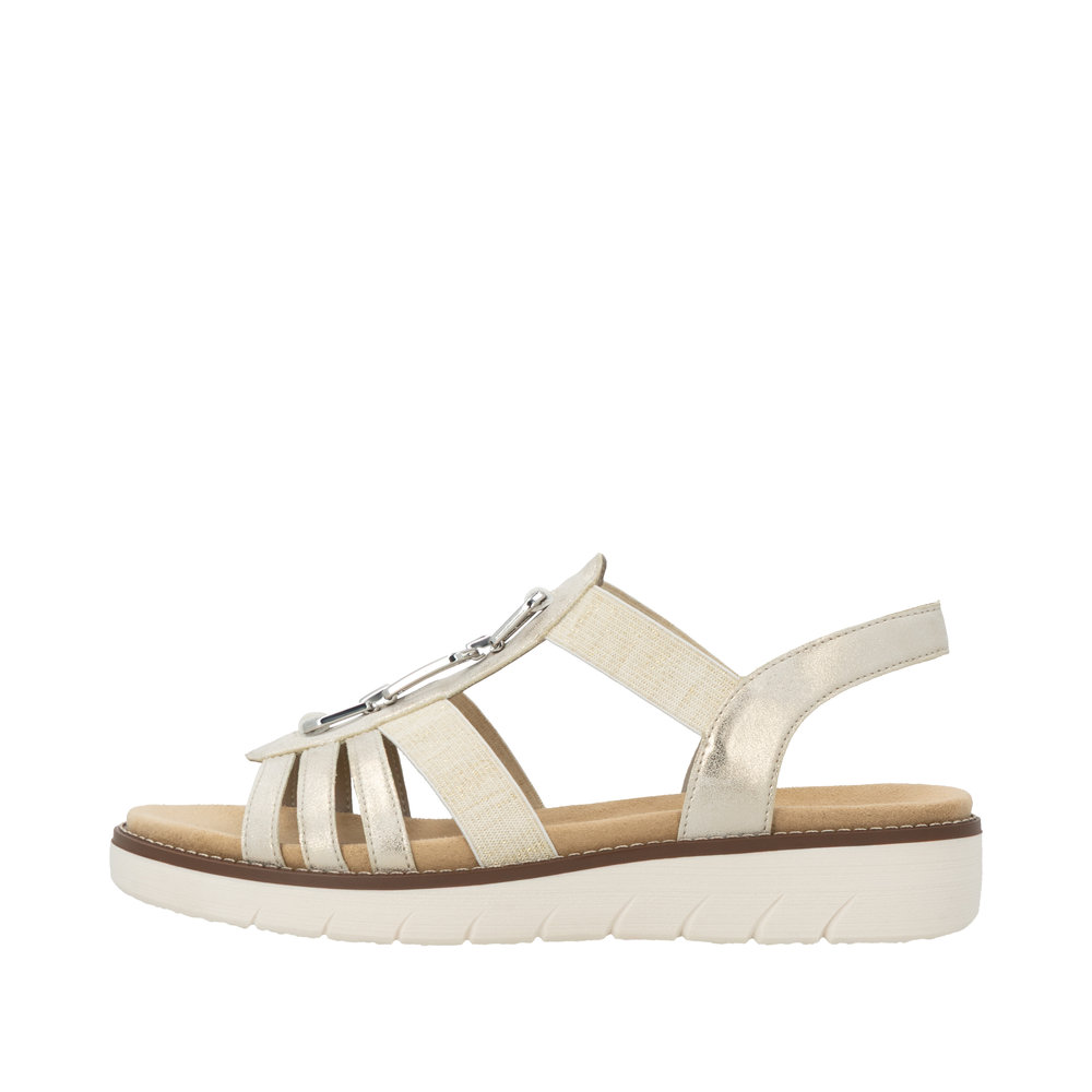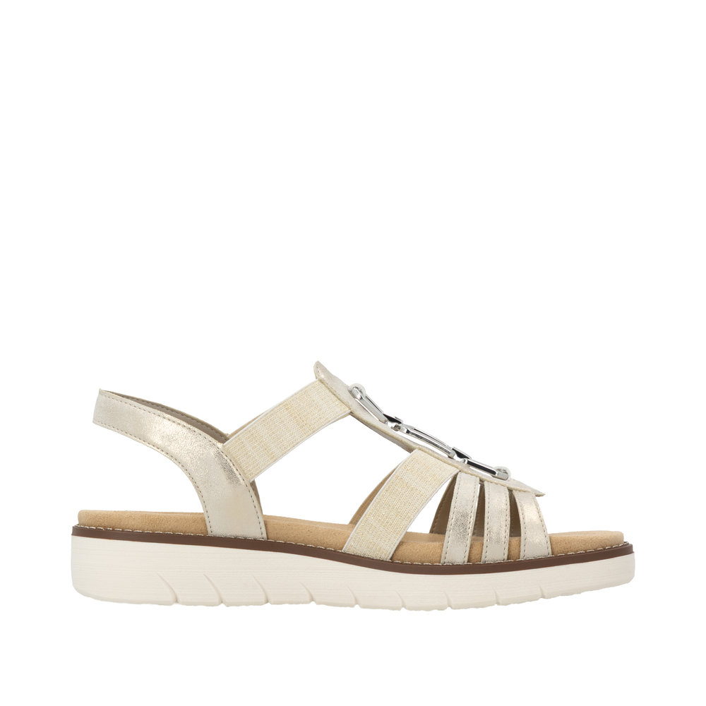 Sandale confort femme Brides Élastiques côtés Talon compensé Nu-pied dame REMONTE 2041 Coloris beige métallisé