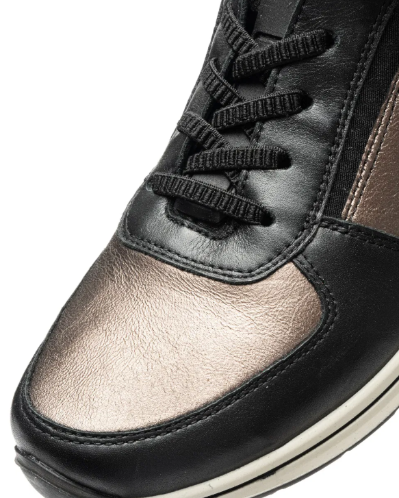 Basket femme cuir souple semelle épaisse confortable grande largeur A enfiler ARA 1224836-15 OSAKA Coloris noir/bronze