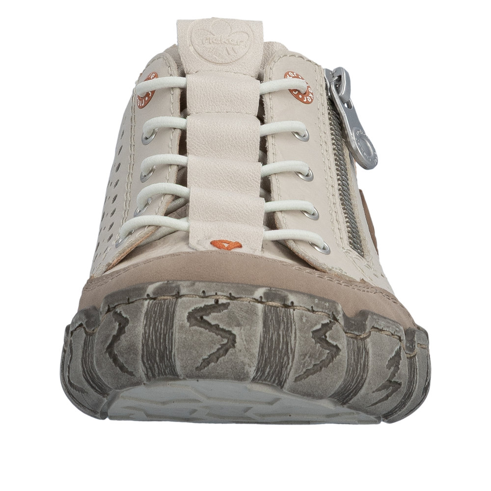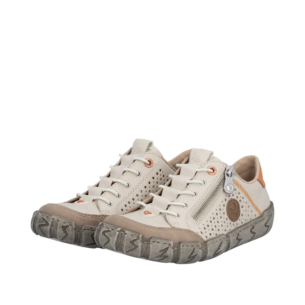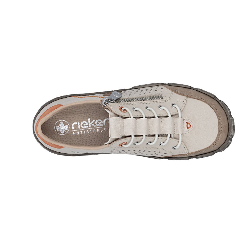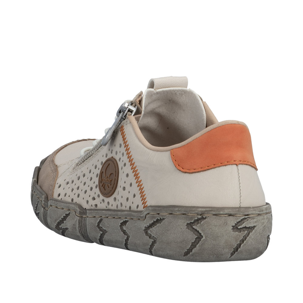 Tennis femme Chaussant extra-large Cuir perforé Élastiqué Semelle souple RIEKER L0355-61 coloris beige / orange