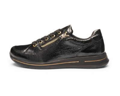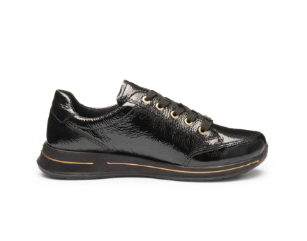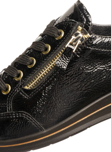 Ces sneakers pour femme ARA vernis noir allient élégance et praticité au quotidien. Leur finition brillante apporte une touche raffinée à ce modèle décontracté, parfait pour accompagner aussi bien un jean qu’un pantalon habillé ou une jupe fluide. Ces souliers bénéficient d’une largeur H, offrant un chaussant plus spacieux que les baskets standards.