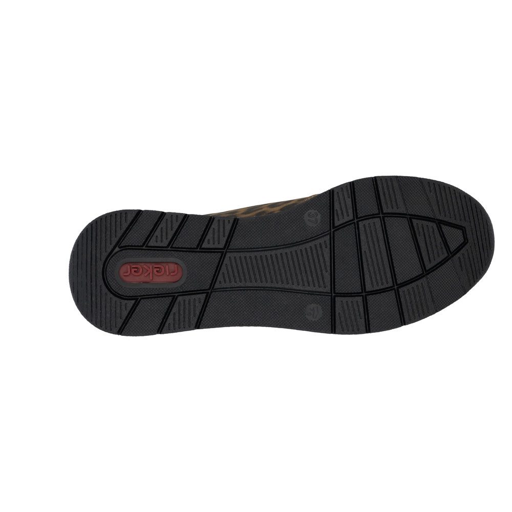 Tennis femme, grande largeur, fermeture à lacets+zip, semelle compensée RIEKER 58902 marron / noir / léopard / doré