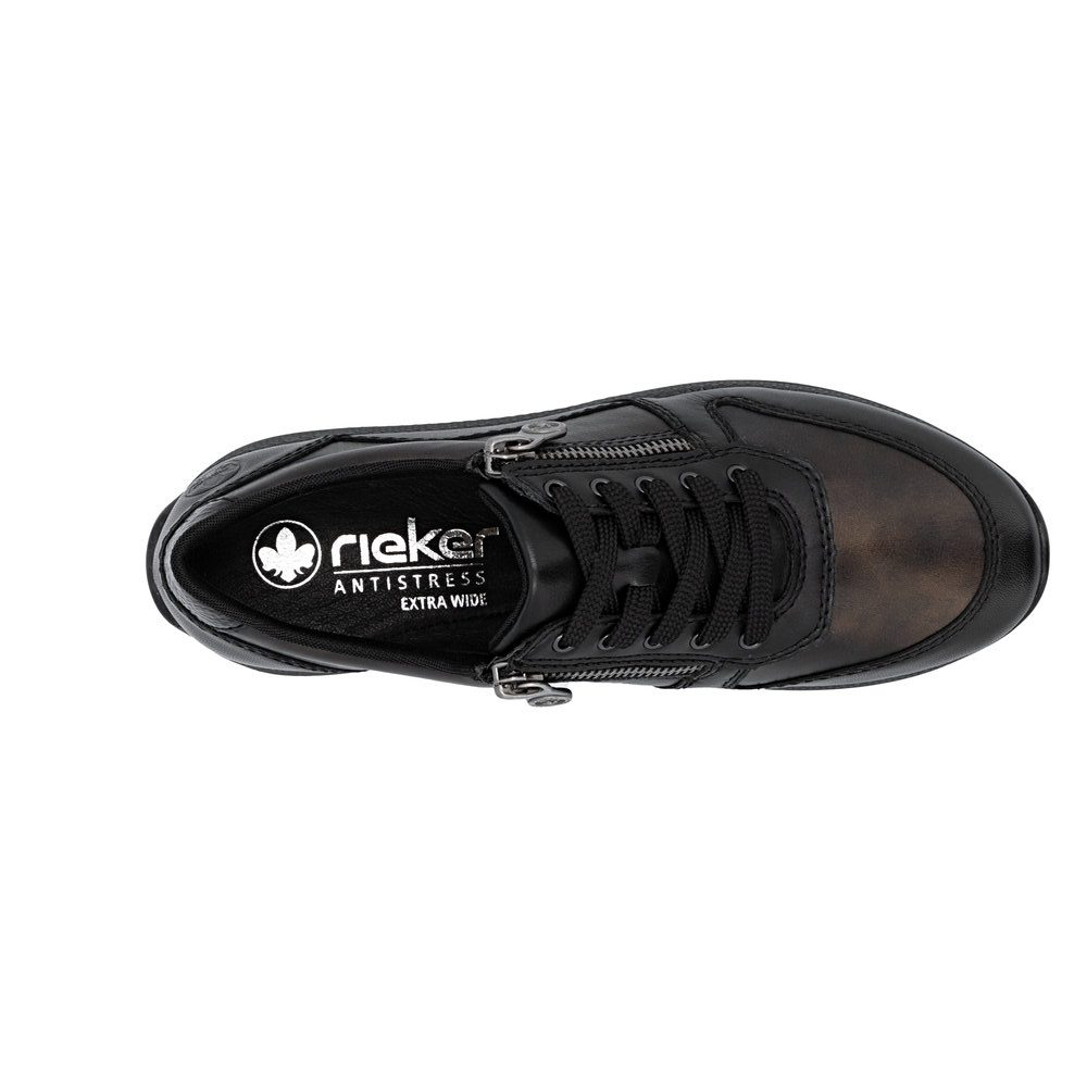 Les tennis RIEKER pour femme allient élégance et bien-être au quotidien. Ces sneakers en cuir véritable offrent un confort exceptionnel grâce à leur forme spécialement conçue pour les pieds larges. Avec leur doublure intérieure mêlant cuir et textile, ces baskets assurent une bonne respirabilité.