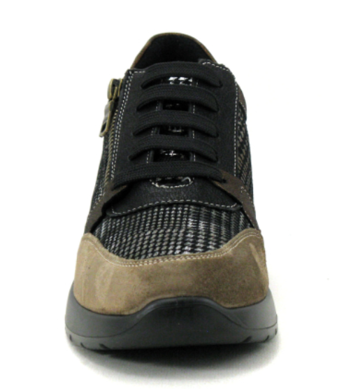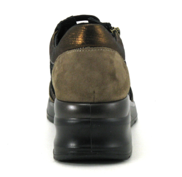 Tennis mode femme cuir Doublure cuir Talon compensé Fermeture lacets + zip INFINI I. PADOU 725-102 coloris kaki/bronze