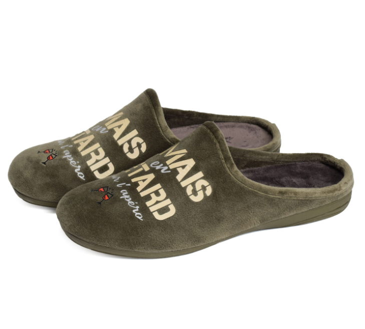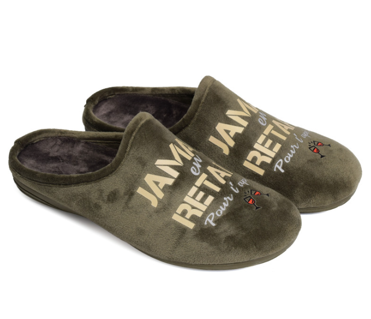 Ces pantoufles incarnent l’art de vivre à la française : le goût du confort sans renoncer à l’élégance, l’humour mêlé à la distinction. Présentées dans un coloris vert kaki intemporel, elles feront également un cadeau original et raffiné pour les fêtes de fin d’année, la Fête des Pères ou toute autre occasion privilégiée.