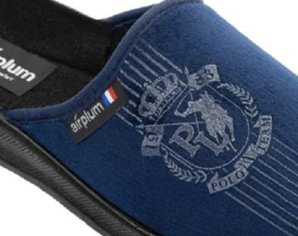 Cette pantoufle confortable Homme est en textile épais bleu ornée d’un écusson » polo team » sur le dessus. L’intérieur des mules Homme AirPlum en tissu molletonné noir garde les pieds bien au chaud. Le talon légèrement surélevé permet un bon soutien lors de la marche. Vous pouvez laver vos pantoufles à 30°. La semelle de marche flexible de la chaussure Airplum mesure environ 2.5 cm au talon.